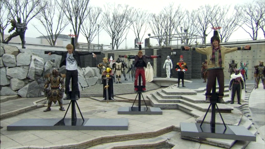 They found a time capsule in which Naoki has wrote a message about what happened and the final message was "Kamen Riders are the Messagers of Justice" Eiji, Kotaro, Momotaros now in Ankh's body were captured by Shocker and were to be executed in front of the public.
