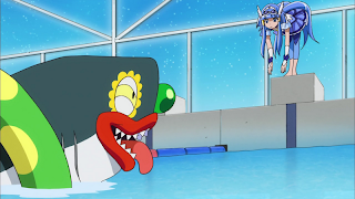 Wolfrun challenged Cure Beauty in a swimming race. However there was a shark in Cure Beauty's lane. She freeze the pool with Beauty Blizzard and skate her way to the finish line.