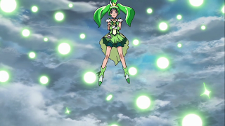 Kage tried to turn the Precures into crystal but the Miracle light healed them. Another big spawn appeared in front of the Smile and Dokidoki team but this time, they were ready. Cure March used 100 March shots while Cure Sunny focused the Sunny Fire into her fist. Cure Rosetta shield them as Cure Beauty and Cure Diamond combined their powers. Cure Peace and Cure Sword were next (Peace was happy that she is called a senior) Finally Cure Heart and Cure Happy dealt the final blow.
